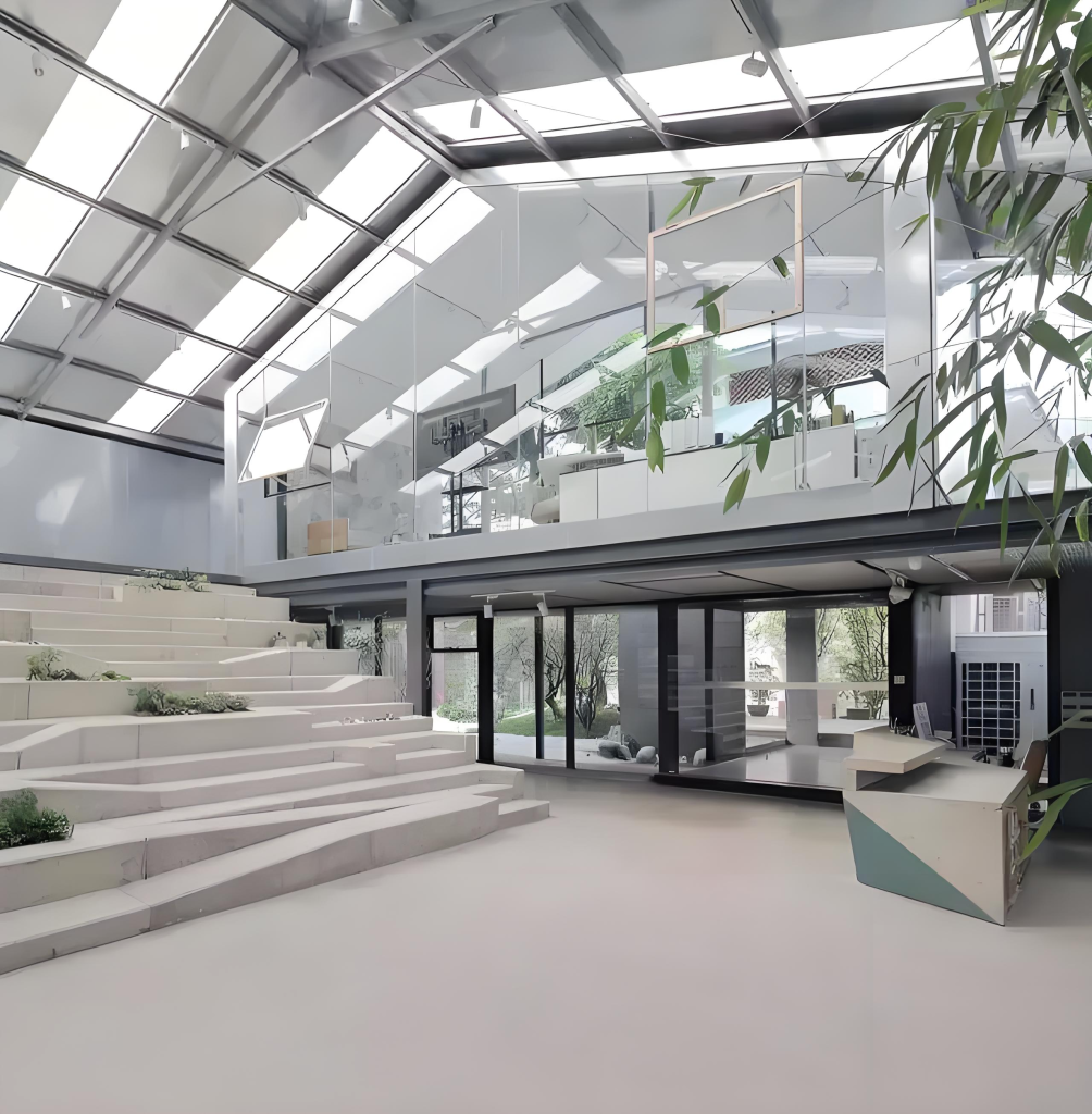 The client aimed to create a workspace that integrates modern architectural aesthetics, ecological experience, and energy efficiency.
