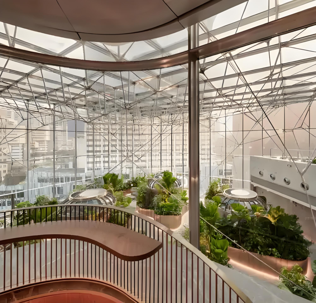 The Beijing Eco Business Park Glass Greenhouse Office demonstrates the innovative potential of greenhouse architecture in urban office design.