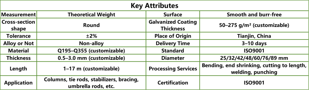 ur 6,000 m² production and processing facility is equipped with advanced machinery and a strict quality management system, ensuring each galvanized round pipe delivers excellent corrosion resistance, high strength, easy installation, structural stability, and low maintenance costs.